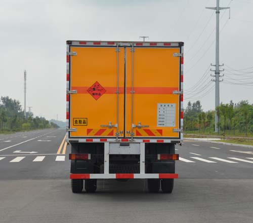 重汽斯達(dá)-斯太爾牌防爆車(chē)\民爆車(chē)\炸藥運(yùn)輸車(chē)廂體外飾冷軋鋼板,內(nèi)飾防靜電鋁板,底板鋪防靜電膠板,側(cè)壁設(shè)防雨通風(fēng)窗口,帶捆綁固定拉環(huán),煙霧感應(yīng)器,防盜報(bào)警開(kāi)關(guān),靜電帶,滅火器2只,車(chē)廂黃色,有危險(xiǎn)標(biāo)志,貼有反光標(biāo)識(shí)。