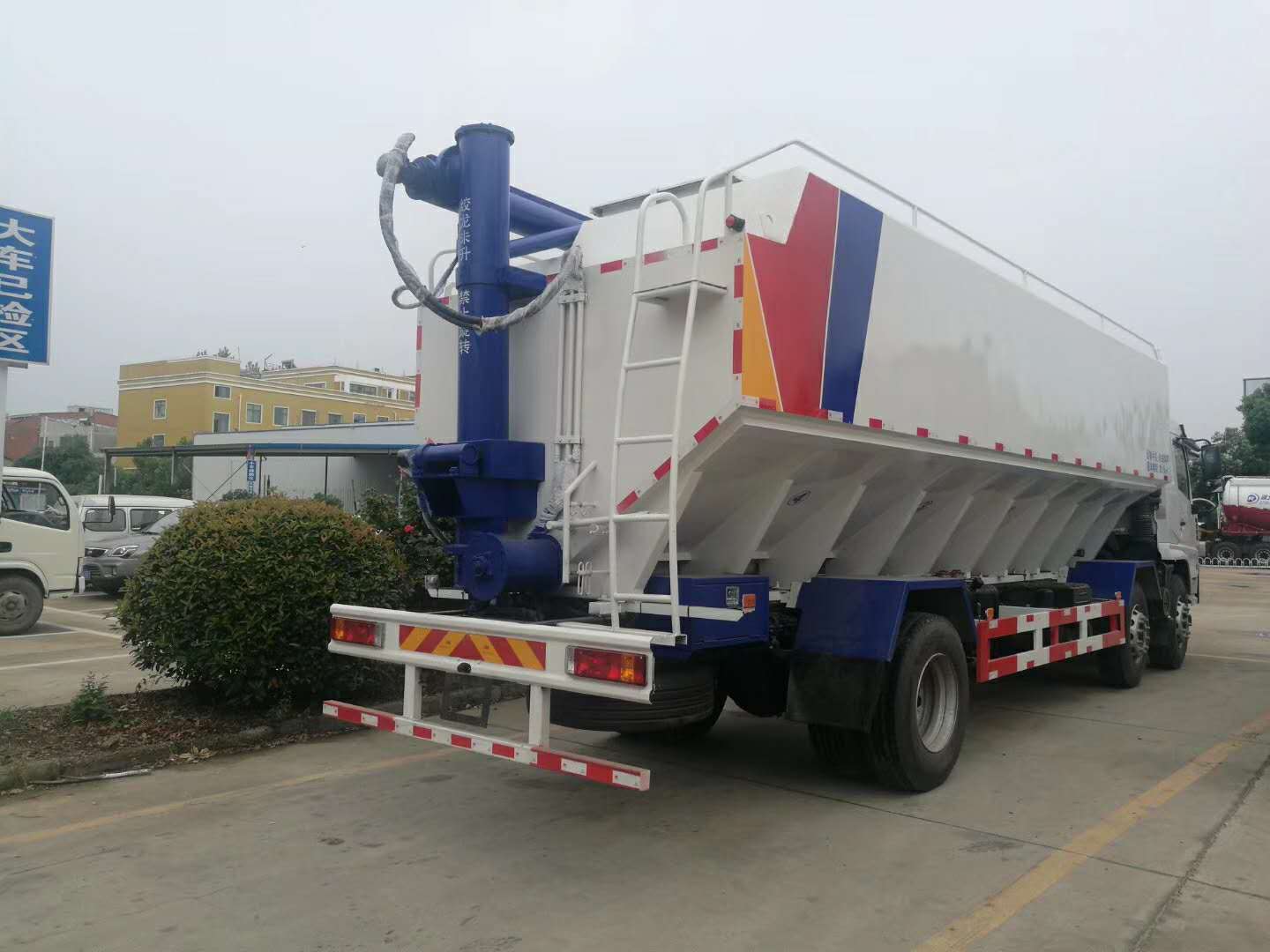 東風(fēng)天錦小三軸30方散裝飼料運(yùn)輸車選裝配置:遙控操作蛟龍舉升或旋轉(zhuǎn);車載發(fā)電機(jī);液壓蛟龍。