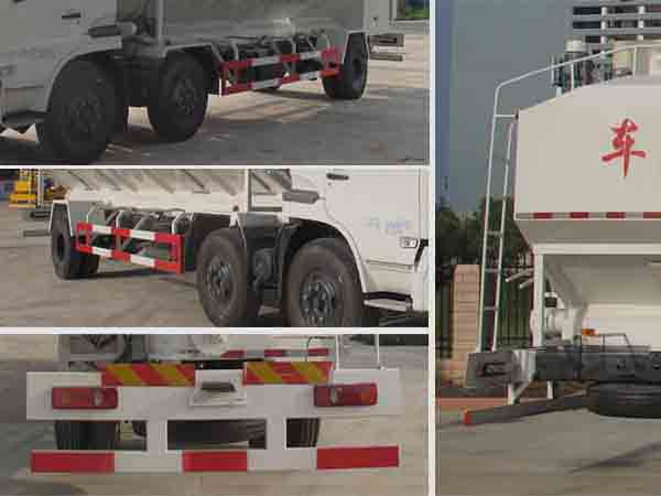 罐體外形尺寸(mm):8100×2480×2150(7000×2480×2150);罐體有效容積:29.5立方米;介質(zhì):膨化及顆粒飼料,粉料;密度:500kg/立方米;運(yùn)輸介質(zhì):膨化及顆粒飼料、粉料;外形長/軸距/后懸對應(yīng)關(guān)系為(mm): 10980/1700+5100/2750,10980/1800+5000/2750,9990/1700+4200/2660, 9990/1800+4100/2660。防護(hù)材料:Q235A碳鋼,后防護(hù)采用焊接連接。后防護(hù)截面高度尺寸:50×100(mm),下邊緣離地高度445mm。本車僅選用的發(fā)動(dòng)機(jī)型號(hào)為ISD210 50,ISD245 50,ISD270 50,ISB210 50,分別與發(fā)動(dòng)機(jī)對應(yīng)的油耗值為:33.7,33.6,33.6,33.5.ABS生產(chǎn)廠家:東科克諾爾商用車制動(dòng)系統(tǒng)(十堰)有限公司;型號(hào):3631010-C2000.選裝后部外形圖片.隨底盤選裝駕駛室。 |