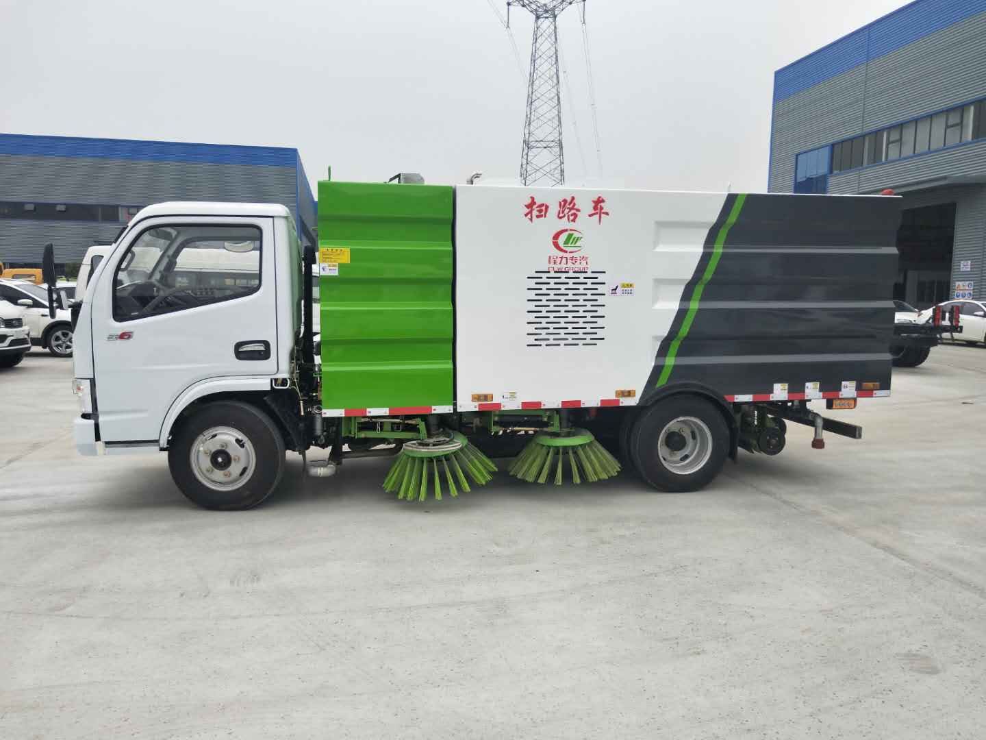 | 東風(fēng)多利卡國(guó)六掃路車采用東風(fēng)多利卡型國(guó)六二類底盤改裝,加裝副發(fā)動(dòng)機(jī)、風(fēng)機(jī)、清水箱、垃圾箱、左右立掃、后置吸盤,掃盤降塵系統(tǒng),液壓系統(tǒng)、專用裝置電控系統(tǒng)和副車架等改裝而成: