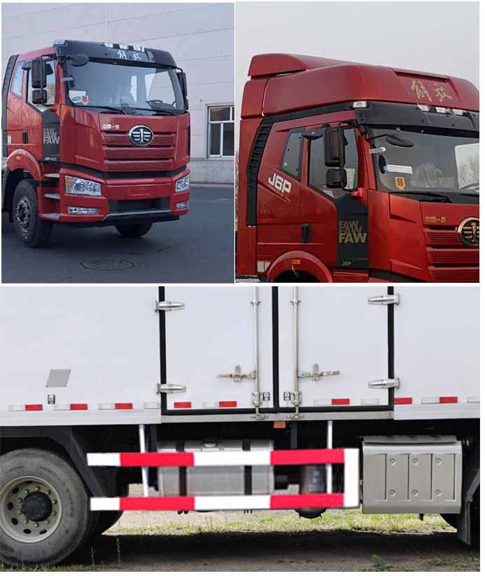 隨底盤選裝平頂駕駛室,選裝大排半駕駛室,選裝導流罩,隨底盤選裝右側(cè)無油箱;車廂頂部封閉,不可開啟,選裝單側(cè)單開門,雙開門,對開門,無門結(jié)構(gòu),可選裝功率相當?shù)钠渌吞柕闹评錂C組,制冷機組可前置,內(nèi)置或底置;選裝符合QC/T449-2010規(guī)定的行駛溫度記錄儀;側(cè)面防護裝置的材料為Q235,螺栓連接,后下部防護裝置的材料為700L,螺栓連接,斷面尺寸為120×90mm,離地高度為480mm.ABS防抱死制動系統(tǒng)生產(chǎn)廠家:長春瑞立科密汽車電子有限公司,型號:CM4XL.額定載質(zhì)量18105,17105kg對應(yīng)準乘3人,額定載質(zhì)量18170,17170kg對應(yīng)準乘2人.安裝帶衛(wèi)星定位功能的行駛記錄儀.隨底盤前軸選裝盤式制動器,選裝限速裝置,限速89km/h, 長度尺寸對應(yīng)關(guān)系:12000=1500+1900+4700+1350+2550,12000=1500+2100+4500+1350+2550,12000=1500+1900+4900+1350+2350,油耗申報值與發(fā)動機對應(yīng)關(guān)系:39.0L/100km(CA6DM2-42E6,CA6DM2-46E6),隨底盤選裝右側(cè)400L油箱 |