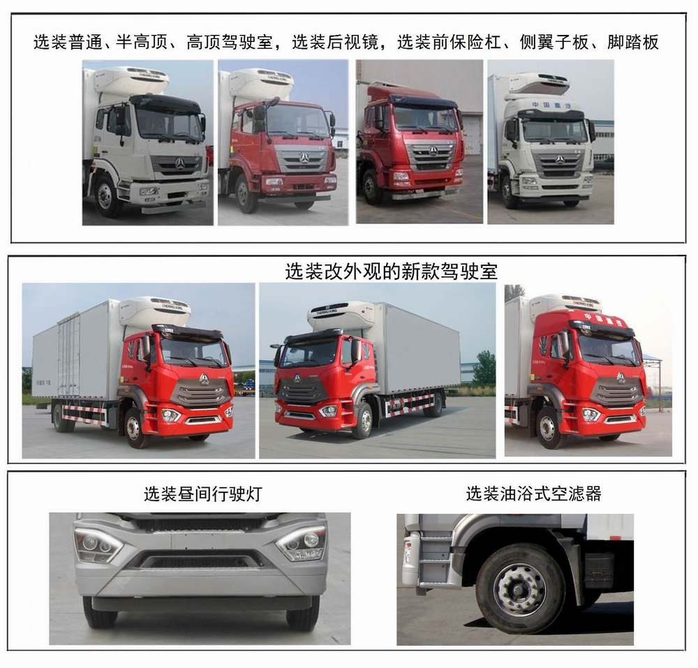 中國重汽豪瀚6米8國六冷藏車采用中國重汽公司冷藏車專用底盤,2.3米豪瀚H78B高頂雙臥駕駛室輕奢版、德國曼240馬力6缸機(jī)7升大排量發(fā)動機(jī)(MC07.24-50)、豪沃8檔大扭矩變速箱、軸 距:5100 、9噸后橋、275/80R22.5真空胎、前鋁合金車輪+后輕量化車輪、氣囊座椅、自動空調(diào)、電動翻轉(zhuǎn)駕駛室、ABS、中國重汽智能通B版、多媒體中控大顯示屏、四方位攝像頭、行車記錄儀、電動門窗、遙控鑰匙、中控鎖、LED日間行車燈。整車不超重。國內(nèi)知名廠商生產(chǎn)的玻璃鋼,各板塊間用高強(qiáng)度結(jié)構(gòu)膠粘接,配以鋁合金型材鉚接成整體,中間8CM聚氨脂泡沫保溫,廂頂封閉,制冷效果更顯著。不銹鋼門鉸鏈及栓桿。車廂內(nèi)部尺寸:6830*2420*2520(mm)。車廂地板標(biāo)配防滑花紋鋁板。