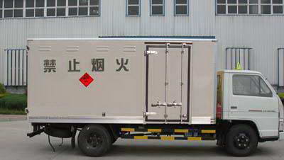 我公司專業(yè)生產(chǎn)東風系列,江鈴系列,江淮系列,北汽奧鈴系列,北汽時代系列,北汽歐曼系列,慶鈴系列,解放系列等爆破器材運輸車,廂體為雙層金屬骨架結(jié)構(gòu),外部為冷扎鋼板,內(nèi)壁采用鋁合金板蒙面,夾層為隔熱阻燃材料填充。設置對開門,如需安裝抗暴容器則增開側(cè)門,側(cè)壁設有防雨功能自然通風窗口,以使廂內(nèi)外空氣流動,廂體內(nèi)部做防靜電處理,廂體底部與廂內(nèi)前部鋪有阻燃導靜電膠板,并與底盤等電位連接,通過車輛后端的導靜電裝置與大地相連,可防止靜電火花的產(chǎn)生和車輛靜電及時釋放,提高車輛的安全性。廂體內(nèi)部前面和側(cè)面裝有固定拉環(huán),與捆綁帶使用捆綁貨物以避免移動,保證安全。