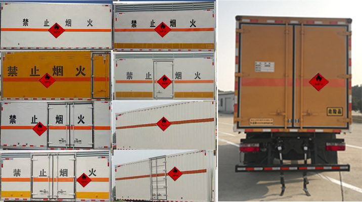東風(fēng)D7/F7易燃?xì)怏w廂式運(yùn)輸車是危險品運(yùn)輸車中的細(xì)分專用車產(chǎn)品。國六排放。云內(nèi)170馬力發(fā)動機(jī)D30TCIF1,法士特8檔變速箱,軸距3800,前后橋3/6T,255-70R22.5 16PR真空胎(B19/2030新款單排駕駛室),玉柴發(fā)動機(jī)165馬力,6檔變速箱變速箱,3800軸距,前后橋2.7/5.5,245/70R19.5 16PR真空胎.新法規(guī),廂式危險品運(yùn)輸車專用。其他按國家危險品運(yùn)輸車標(biāo)準(zhǔn)執(zhí)行(底盤前盤(碟)后轂、ECU限速80km/h,空氣懸掛、行駛記錄儀、ABS,AEBS,TPMS,FCWS/LDWS),排氣管前置。有燃油和環(huán)保公告,上戶無憂。尾板為選裝件,選裝尾板時,尾板質(zhì)量為550kg,尾板收起狀態(tài)時的水平長度為280mm. 東風(fēng)D7/F7易燃?xì)怏w廂式運(yùn)輸車廂體外飾冷軋鋼板,內(nèi)飾防靜電鋁板,底板鋪防靜電膠板,側(cè)壁設(shè)防雨通風(fēng)窗口,帶捆綁固定拉環(huán),煙霧感應(yīng)器,防盜報警開關(guān),靜電帶,滅火器2只,有危險標(biāo)志,貼有反光標(biāo)識。廂體右側(cè)開側(cè)門,可選裝無側(cè)門廂體、帶隔倉箱體。選裝開百葉窗,選裝瓦楞板結(jié)構(gòu).。