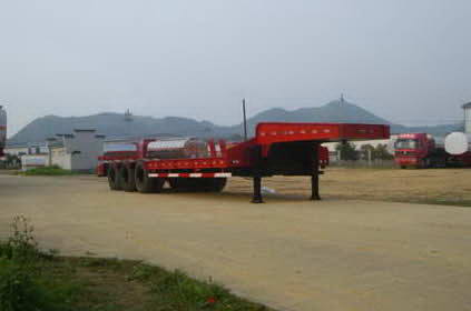 | 低平板半掛車2貨臺承載面離地高度1150mm,僅運輸不可拆解的物體 。選裝爬梯的整車高度為2900mm,不選裝爬梯的整車高度為1650mm。 |