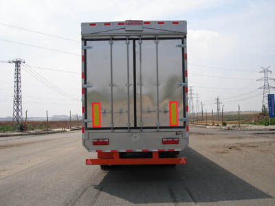 箱體頂部封閉兩翼可開啟;ABS系統(tǒng)生產(chǎn)廠家為廣州市科密汽車制動(dòng)技術(shù)開發(fā)有限公司、型號(hào)為4S/2M;防護(hù)材料均為Q235-A,防護(hù)均采用焊接連接,后部防護(hù)裝置的斷面尺寸為120毫米×50毫米,離地高度為510毫米。 |