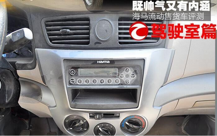 海馬流動售貨車標準配置:底盤采用海馬原廠駕駛室,箱體內部尺寸:2950x1770x1810,海馬90馬力汽油機,五擋變速箱,油剎,165R14LT輪胎,220V外接電源接口,車內時尚照明燈,翻板式置物臺,外置2個高音喇叭,駕駛室頂部帶有大空間儲物柜.