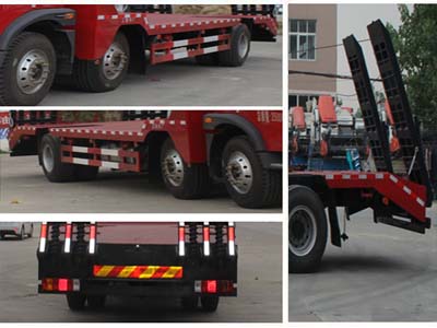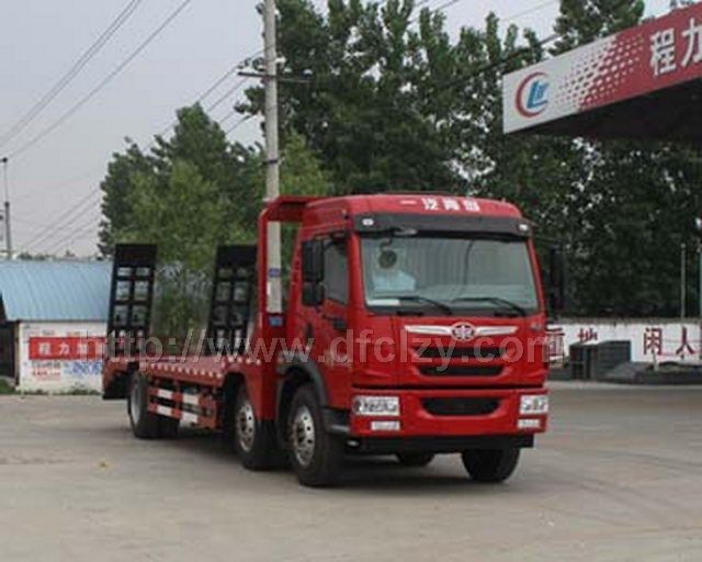 解放前四后四平板運(yùn)輸車用于裝載運(yùn)輸工合機(jī)械、挖機(jī)、鏟車、收割等工合機(jī)械運(yùn)輸,車后部帶后爬梯,帶支腿,底板為5mm花紋鋼板,方鋼承載筋,貨臺承載面尺寸長5280mm, 寬2500mm,承載面可選裝手動或液壓水平支出.平板離地高度:950mm。爬梯長度1800-2000mm,傾角30-45度.