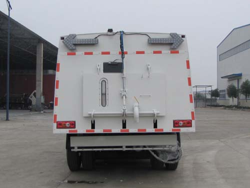 12、車廂尾部帶可調(diào)節(jié)的霧狀噴水桿,在節(jié)約水的同時(shí)消除二次污染及美化路面的效果。