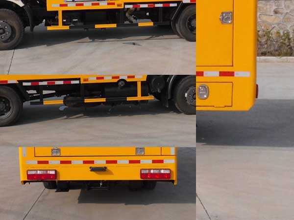 水箱尺寸長×寬×高(mm):1260×2100×1360;側(cè),后防護材料為Q235,側(cè)防護螺栓連接,后防護為裙板結(jié)構(gòu),與車身連為一體,離地高550mm。 |