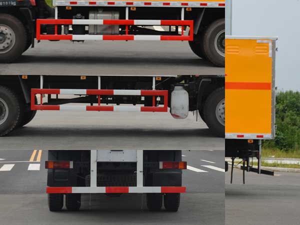 1、廂體頂部封閉,不可開(kāi)啟;2、廂體顏色可變化,文字噴涂位置可變化;3、前置排氣系統(tǒng),ABS系統(tǒng)型號(hào)為4460046300,生產(chǎn)企業(yè)為威伯科汽車(chē)控制系統(tǒng)(中國(guó))有限公司;4、運(yùn)輸品名:黑火藥,壓縮黑火藥,電引爆雷管,爆破炸藥,點(diǎn)燃導(dǎo)火索,類(lèi)項(xiàng)號(hào):1.1D,1.1D,1.1B,1.1D,1.1G;5、防護(hù)裝置材料:側(cè)面防護(hù)及后下部防護(hù)裝置材料材質(zhì):冷彎型鋼/Q235,連接方式:焊接加螺栓連接,后下部防護(hù)裝置截面尺寸100mm×50mm,離地高度540mm;6、MC05.18-50發(fā)動(dòng)機(jī)油耗值為26.3L/100km,MC05.21-50發(fā)動(dòng)機(jī)油耗值為26.4L/100km;7、裝配限速裝置,限速80km/h,安裝具有衛(wèi)星定位功能的行駛記錄儀;8、采用前盤(pán)式制動(dòng)器,子午線(xiàn)輪胎。 |
