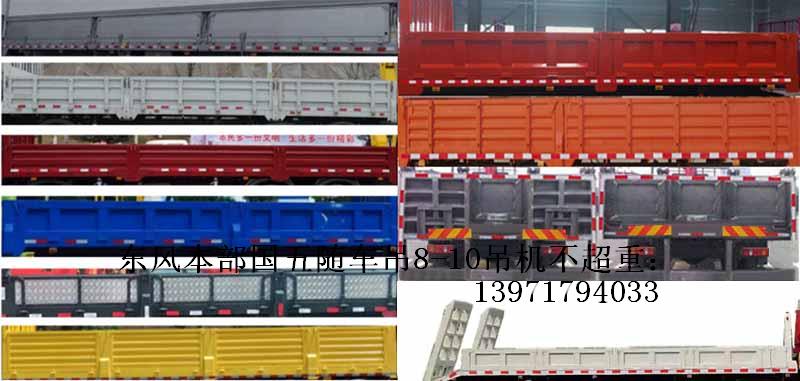東風(fēng)本部單橋國五隨車起重運輸車可選裝前面罩,保險杠;選裝貨箱形式;選裝貨箱自卸功能,自卸方式后卸隨底盤選裝駕駛室.