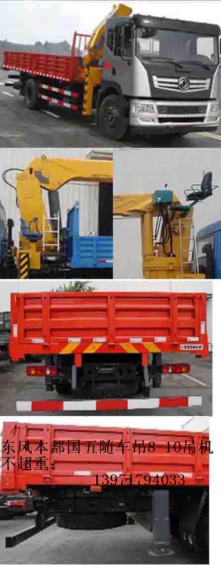 東風(fēng)本部單橋國五隨車起重運輸車采用東風(fēng)公司二類底盤,T5新款豪華駕駛室,玉柴180馬力國五發(fā)動機,10.00R20鋼絲輪胎,陜齒小八擋箱,5噸前橋11.5噸后橋,斷氣剎,方向助力,選裝8噸-10噸隨車吊機(不超重)。箱長6000mm,有燃油和環(huán)保公告.