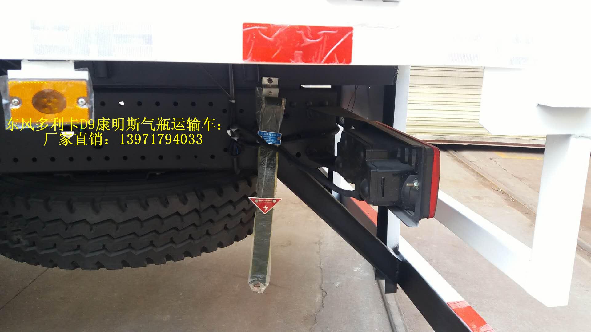 東風(fēng)多利卡D9康明斯氣瓶運(yùn)輸車廂體外飾冷軋鋼板,內(nèi)飾防靜電鋁板,底板鋪防靜電膠板,側(cè)壁設(shè)防雨通風(fēng)窗口,帶捆綁固定拉環(huán),煙霧感應(yīng)器,防盜報(bào)警開關(guān),靜電帶,滅火器2只,車廂黃色,有危險(xiǎn)標(biāo)志,貼有反光標(biāo)識。