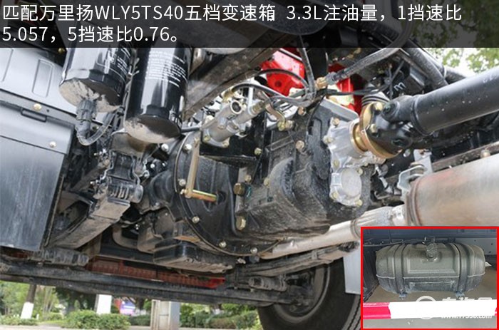 解放虎V國(guó)六4.2米易燃?xì)怏w廂式運(yùn)輸車排氣管為前置,配有防火帽。排氣制動(dòng)采用EGR+DOC+DPF技術(shù)路線,不需要燃燒尿素。配有ABS,帶前盤限速裝置,整車限速80km/h。匹配萬里揚(yáng)WLY5TS40五檔變速箱,3.3L注油量,1擋速比5.057,5擋速比0.76。采用短行程同步器,進(jìn)擋全同步,換擋更輕便。配備120L阻燃式塑料油箱。該車輪胎選用的是玲瓏輪胎,型號(hào)7.00R168PR的胎,3300mm軸距,采用前輪碟剎,5噸級(jí)青特1058后橋,速比為4.875。